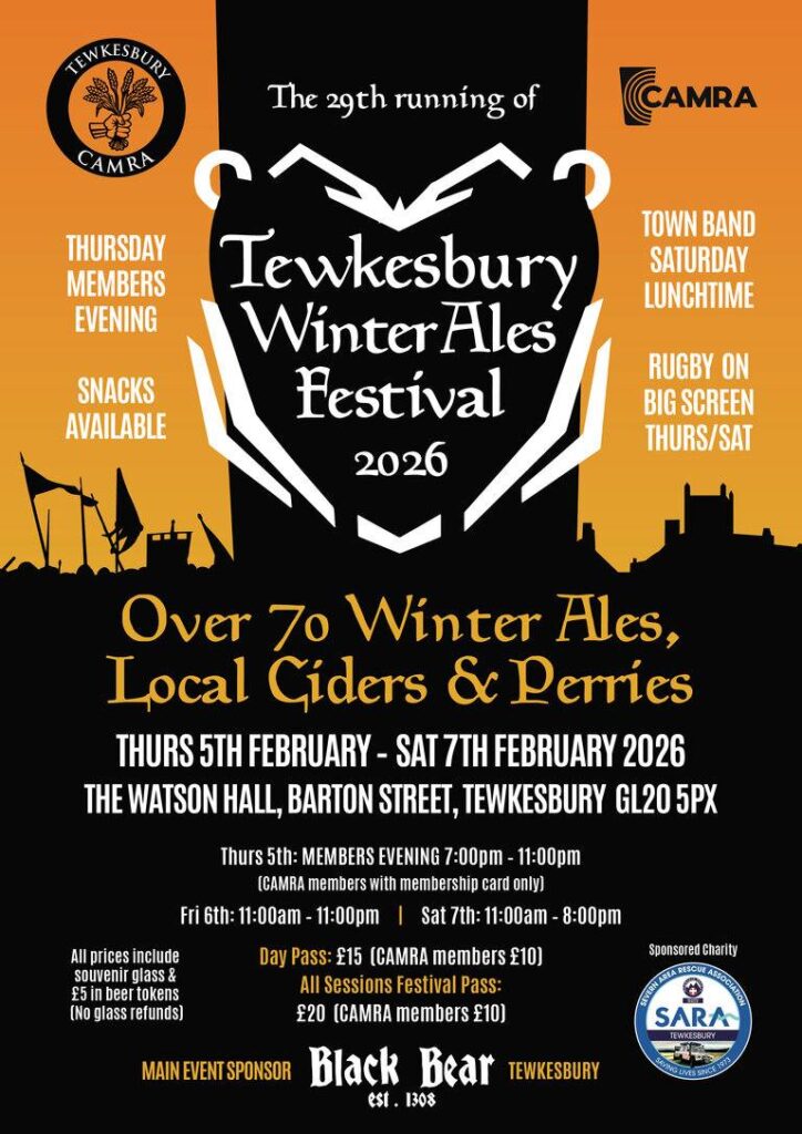 Did you volunteer at Shrewsbury CAMRA Beer and Cider Festival in 2025? If so, you are invited to join us on a trip to Tewkesbury Winter Ales Festival on Saturday 7th February 2026.