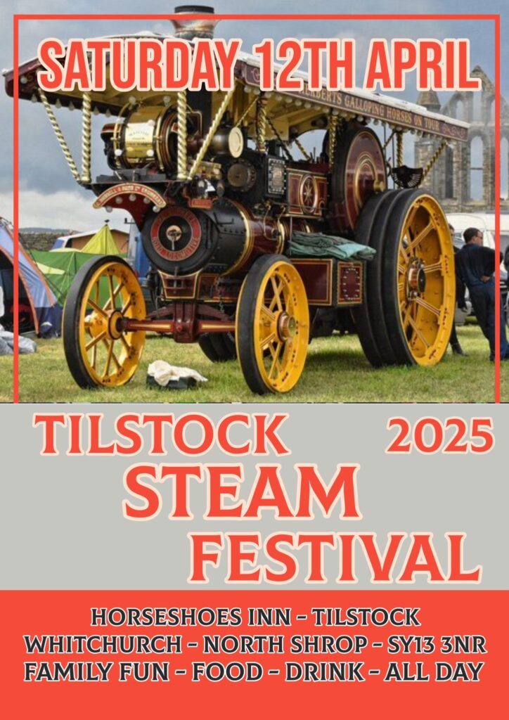 The Horseshoes Inn in Tilstock near Whitchurch is having another Steam Festival. There will be historic British steam engines on display as well as a collection of classic/vintage cars, tractors and bikes. There will also be live music throughout the day, and food and drink stalls.